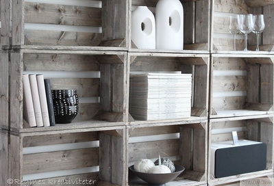 9. Забавные настенные полки можно сделать, просто распилив ящик. Если его зашкурить, покрыть лаком или закрасить, получится очень мило.