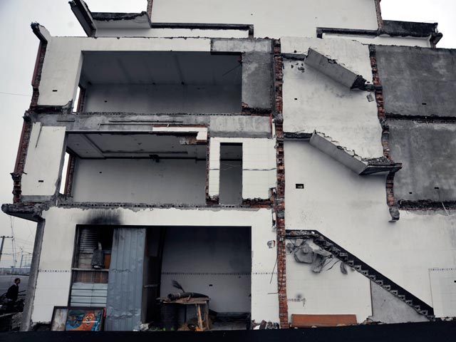 Закон о частной собственности дает право продолжать жить в своем жилье людям, которых не устраивает предложенная властями компенсация за переезд. Потому пятиэтажный дом продолжал оставаться на своем месте. Ло Баогэнь заверяет, что строительство дома обошлось ему в $91000. Он остался единственным жильцом, отказавшимся покинуть здание. Тем временем строители окружили его дом шоссейной дорогой. Помимо связанных с этим неудобств и натиска властей, проблемой 67-летнего китайца стало внимание СМИ - фотографии его дома, опубликованные в интернете, обсуждали пользователи всего мира.