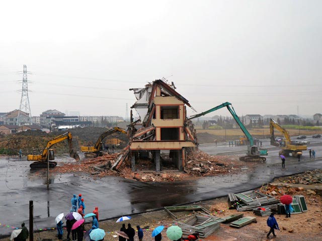 Ставший звездой интернета китайский упрямец все же освободил дом посреди трассы