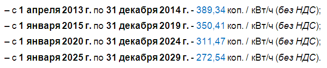 Согласно данному Постановлению, в соответствии с Законом «Об электроэнергетике» (ст. 17-1) для частных домохозяйств, производящих электроэнергию из энергии солнечных лучей при помощи электроэнергетических объектов, установленных (вмонтированных) на крышах и/или фасадах жилых домов, будет действовать «зеленый» тариф, если мощность данных объектов не превышает 10 кВт, и они введены в эксплуатацию: