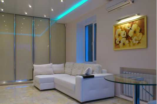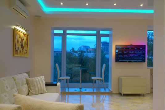 • Квартира укомплектована новой импортной бытовой техникой и мебелью, многоуровневый потолок с дистанционно управляемой разноцветной подсветкой, встроенная музыка по всей квартире, эффект домашнего кинотеатра, кондиционер, полы с подогревом, гидромассажная ванна с светотерапией, спутниковое TV, WI-FI интернет.