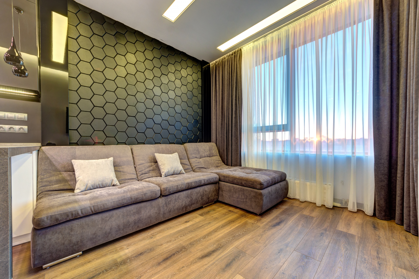 - дизайнерское освещение с приглушенным и с ярким светом