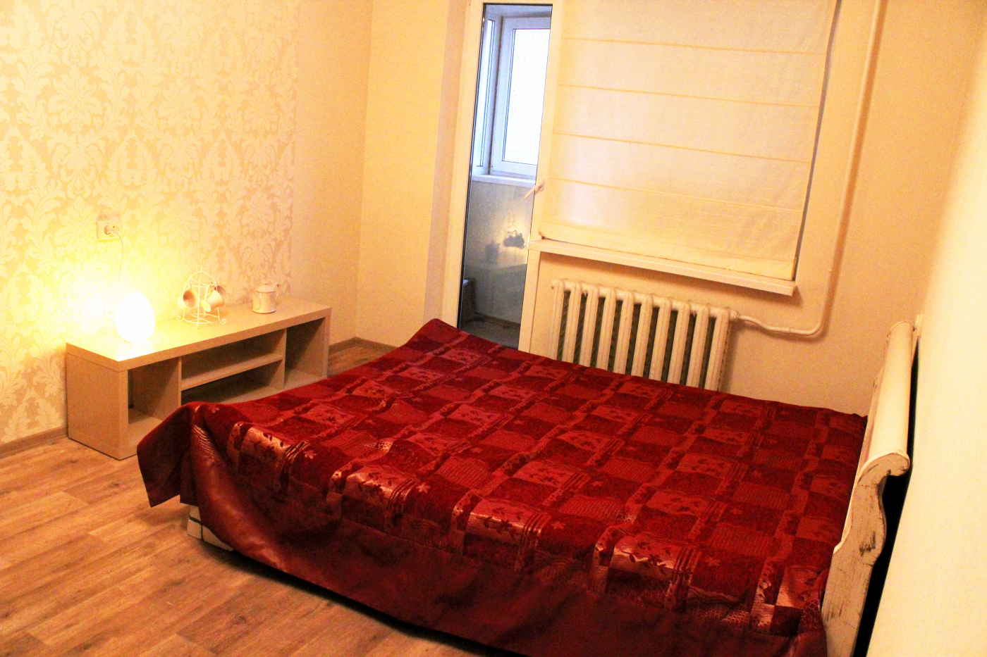 Шкаф-купе, двуспальная кровать. Есть все для комфортного проживания.