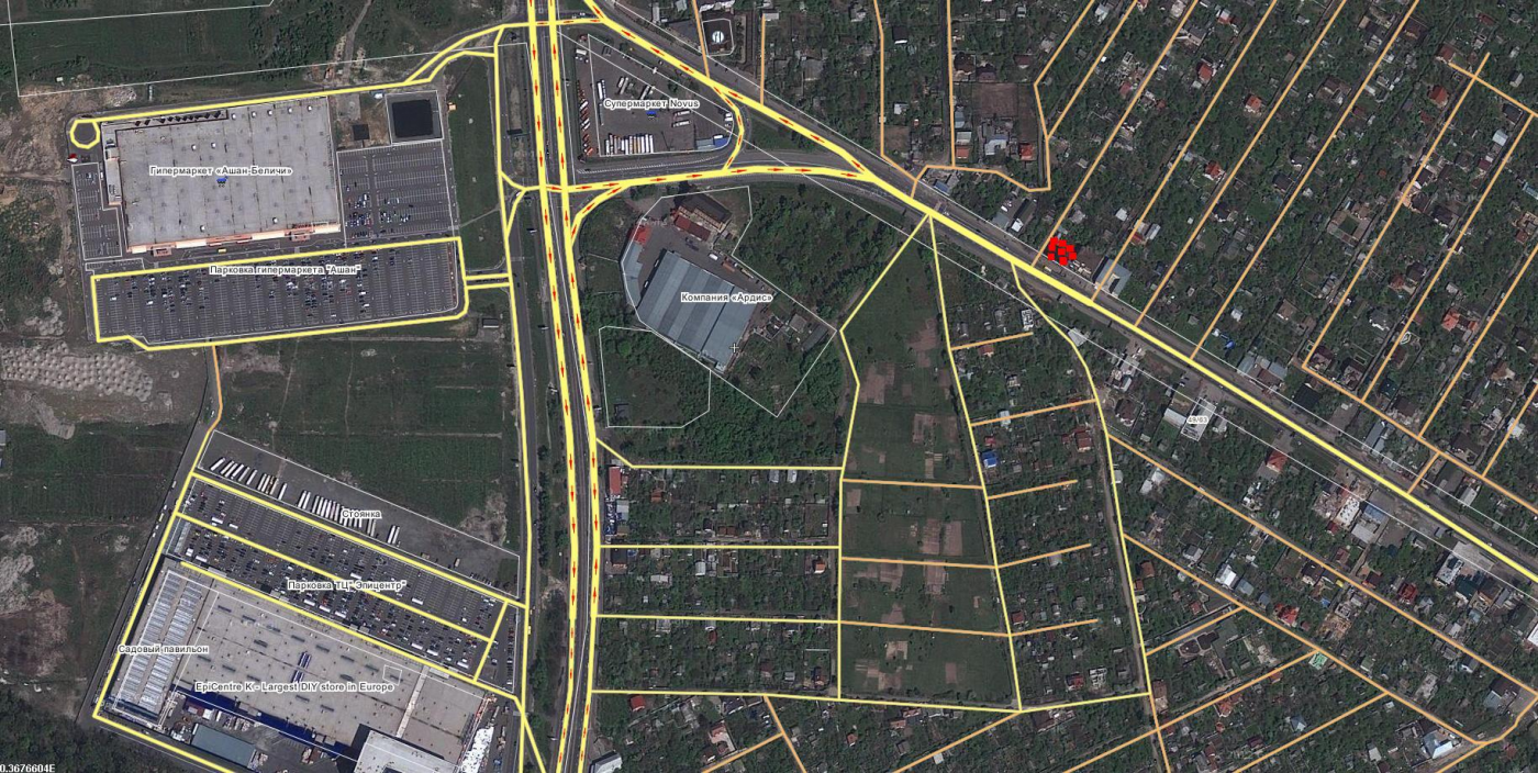 Расположение участка: 100 метров от мегамаркетов "Ашан" 30 тыс.кв.м., «Эпицентр» 56 тыс.кв.м., «Новус» 20 тыс. кв.м., «Лавина» 145 тыс. кв.м, офисные центры, в 50ти метрах от участка ресторан "Пиросмани" и гостиницы. Высокий трафик платежеспособных потребителей 251 тыс.кв.м. современных торговых площадей.