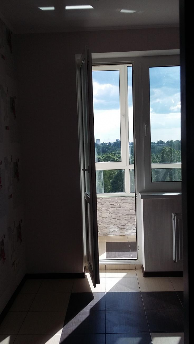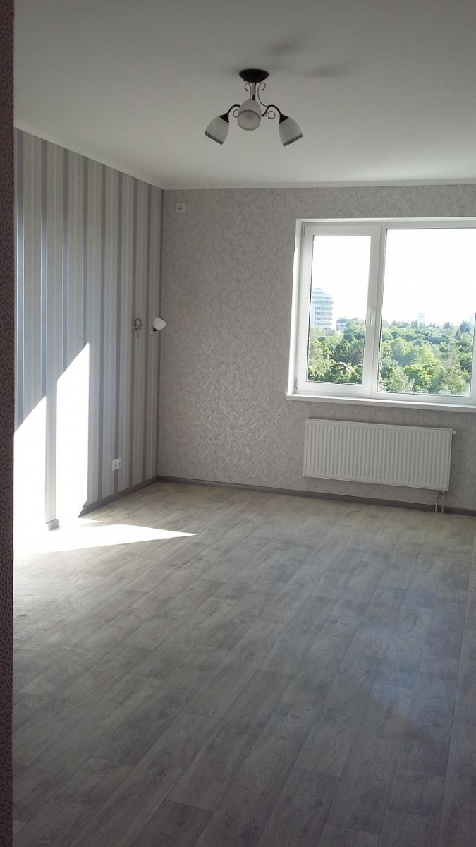 Продам однокомнатную квартиру Киев, ул.Донца 2а. Соломенский район, Караваевы дачи, на территории КНАУ. Новострой 2015года сдан, Площадь 40,2 м.кв(18,5/8,2). Сделан качественный ремонт, мебели, техники нет, 10 этаж 25-ти этажного дома, квартира с видом на парк "Мамаева слобода".