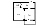 | Площадь (м.кв.) | жилая: 41, кухня: 13, общая: 44 |