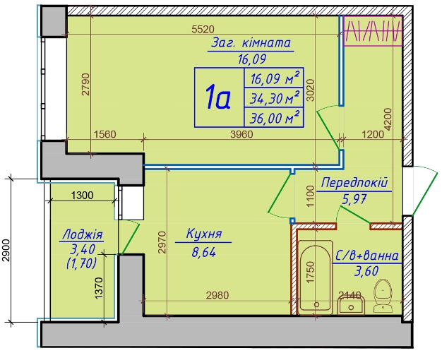 Площадь - 36,00 кв.м.