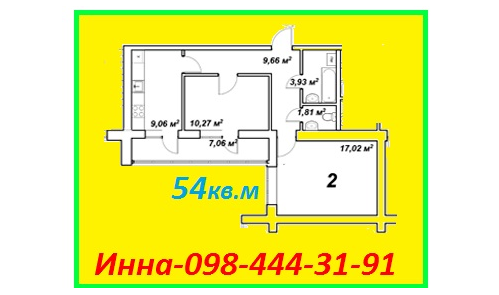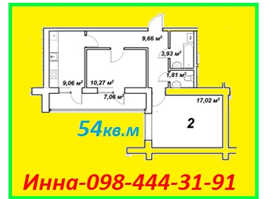 | Площадь (м.кв.) | жилая: 29, кухня: 9, общая: 54 |