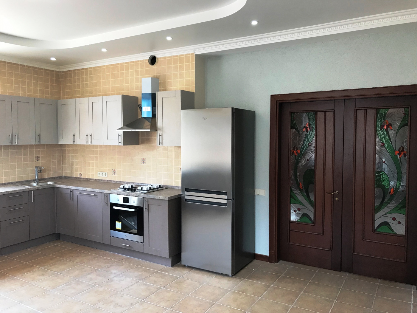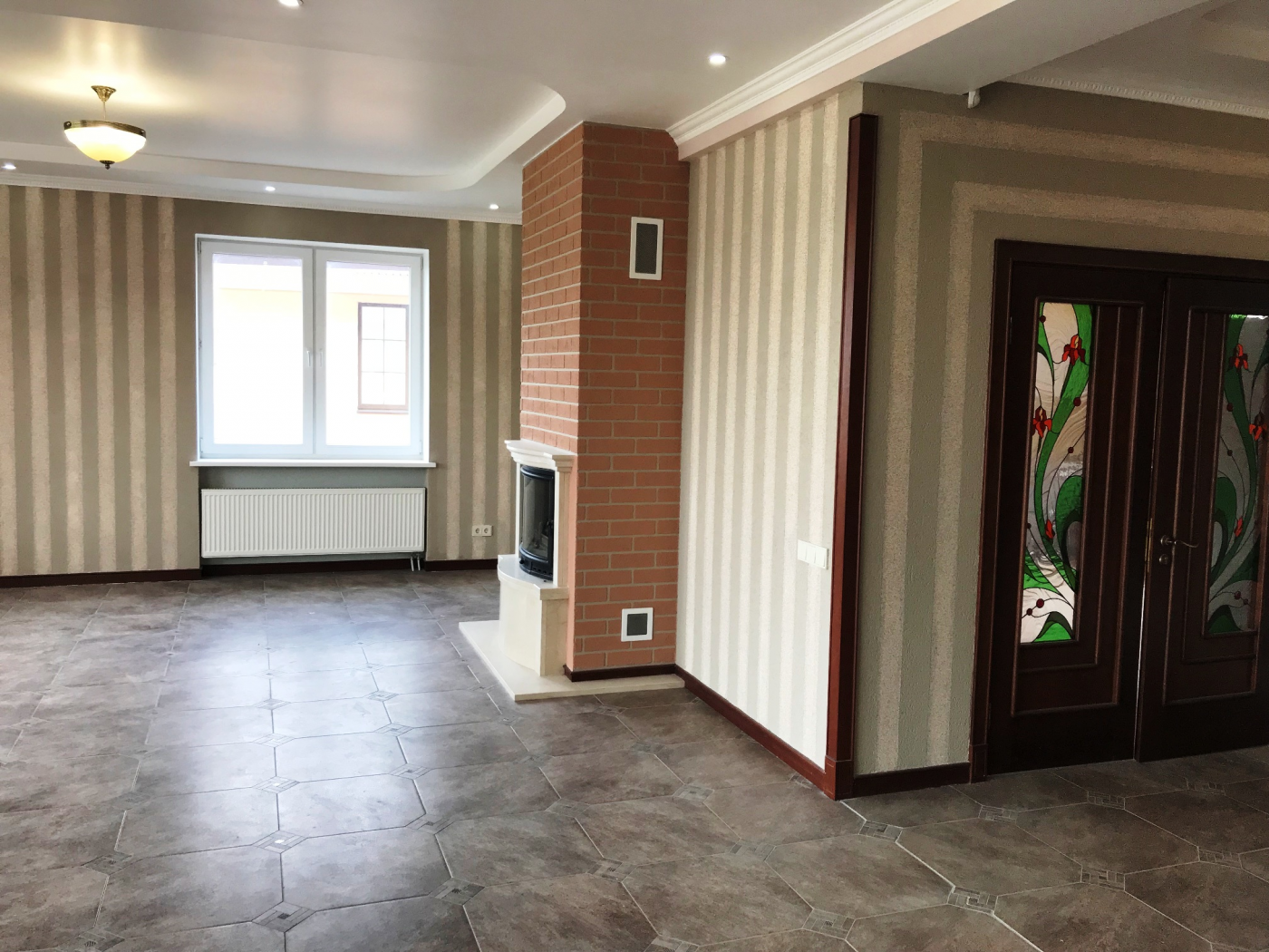 Планировка "Open Space", внутренняя отделка в стиле Классик-Модерн с использованием натурального дерева, мрамора, венецианская штукатурка.