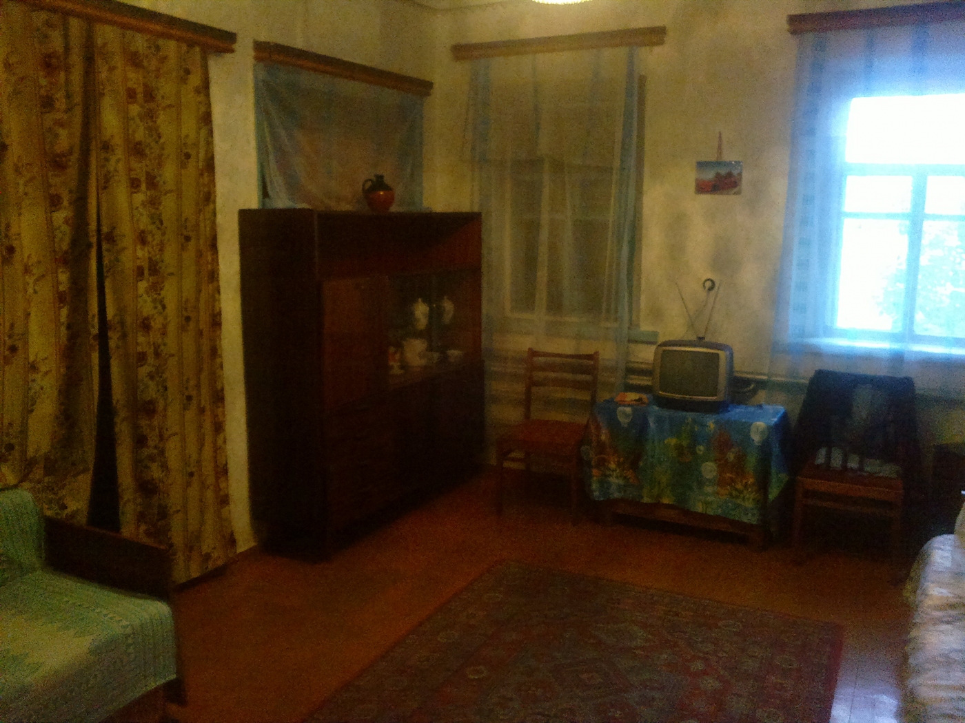 Кирпичный дом полностью пригодный к заезду хозяина. Общая площадь дома 65,3 м. В доме 3 комнаты, площадью 18,9/12,2/9,2м. Площадь кухни 8,5м. Кроме этого есть коридор, сени, кладовая, чердак, печь, груба, плита. Отопление в доме газовое, газ проведен к дому и к большой летней кухне. Все постройки во дворе так же кирпичные. Сарай, летняя кухня, гараж с ямой, погреб. Во дворе расположен колодец. Во дворе есть большой сад, в котором растет очень много фруктовых деревьев: яблони, груши, сливы, вишни, абрикосы, шелковица. Также есть ореховые деревья и много малины.